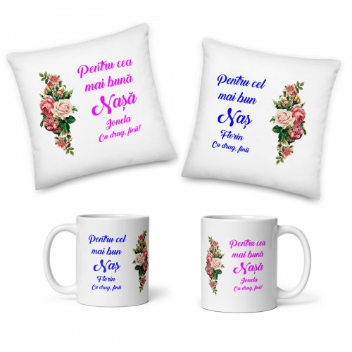 Produsele se vor personaliza si cu numele nasilor si al finilor!