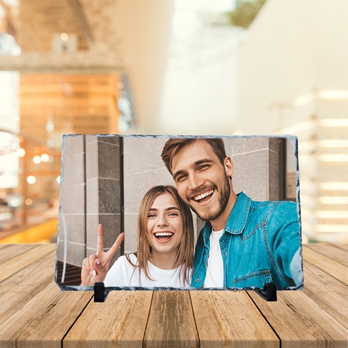 Acest cadou va fi ?ntotdeauna unul special, potrivit pentru numeroase ocazii. Placa ardezie este un cadou ideal care ofera intensitate pozelor datorita suprafeșei lucioase de o calitate superioara. Aceasta ?și poate gasi locul ?n spașiul unei casei sau birou de servici. ?n funcșie de formatul pozei aceasta se poate așeza pe suport ?n pozișie verticala sau orizontala.